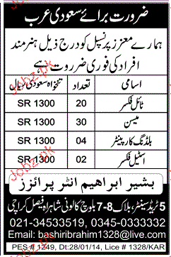 Tile Fixers, Mason, Building Painters Job Opportunity
