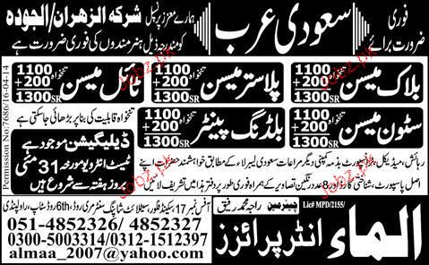 Tile Fixers, Plaster Mason, Block Mason Job Opportunity