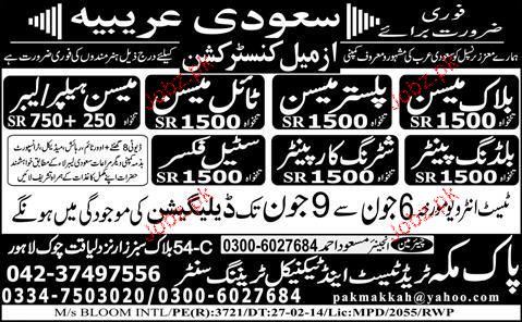 Tile Fixers, Plaster Mason, Block Mason Job Opportunity
