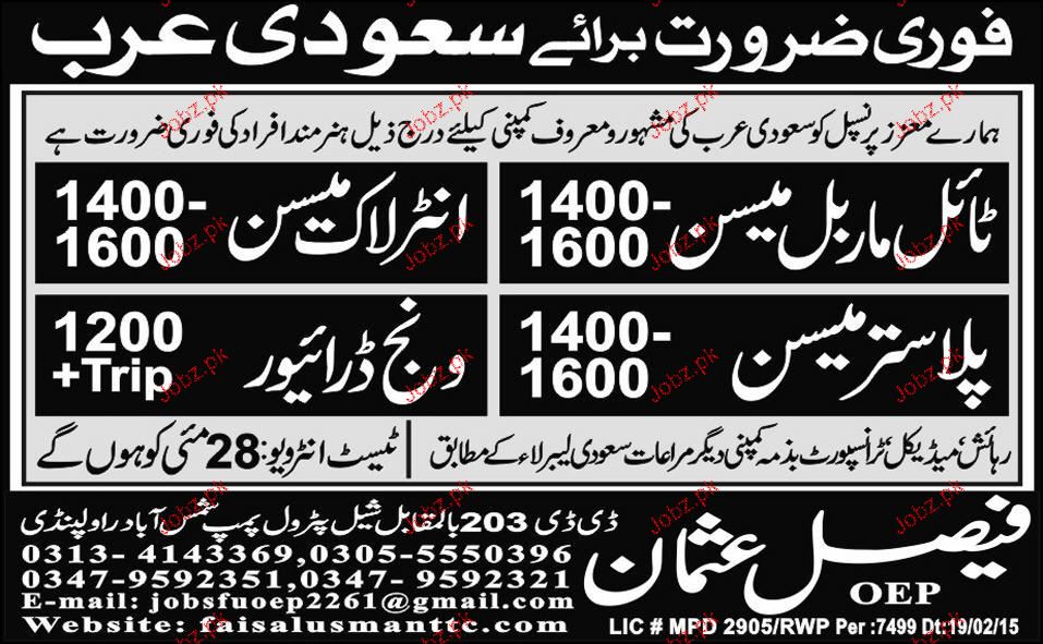 Apply as per details in job advertisement. Login to view further details of how to apply via https://www.jobz.pk online.