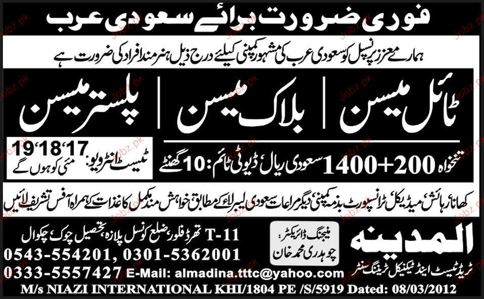 Tile Mason, Block Mason And Plaster Mason Job Opportunity