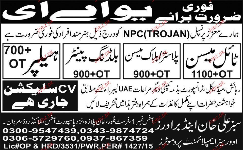 Tile Mason, Block Mason, Building Painters Job Opportunity
