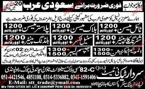 Tile Mason, Block Mason, Steel Fixers Job Opportunity