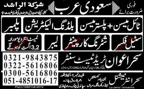 Tile Mason, Building Electricians, Plumber Job Opportunity
