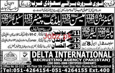 Latest Delta International Recruiting Agency Engineering Posts Saudi Arabia 2025
