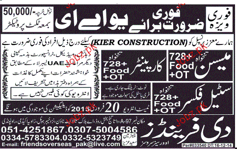 Tile Mason, Mason, Steel Fixers Job Opportunity