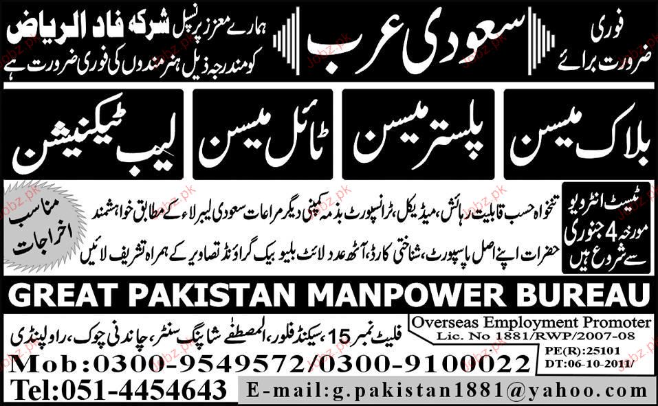 Tile Mason, Plaster Mason And Block Mason Job Opportunity