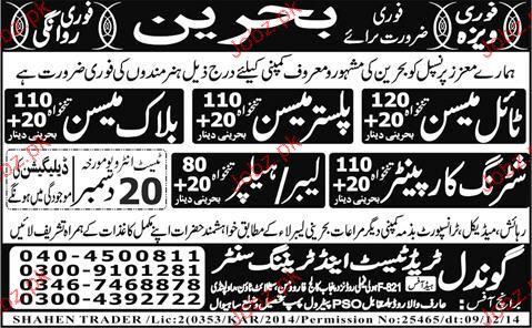 Tile Mason, Plaster Mason, Block Mason, Labors Wanted
