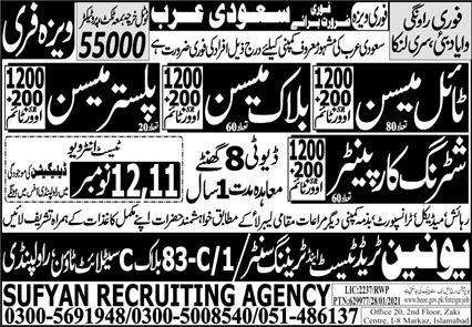 Tile Mason & Plaster Mason Jobs 2021 In Saudi Arabia