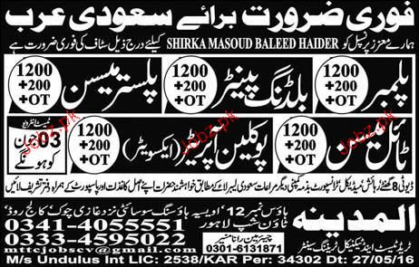 Tile Mason, Pokline Operators, Plumbers Job Opportunity