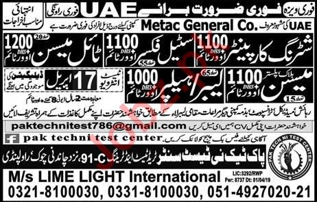 Latest Pak Techni Test Center Construction Posts UAE 2025