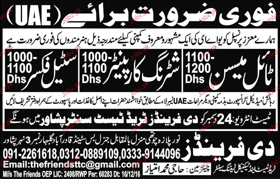 Tile Mason, Shuttering Carpenters, Steel Fixers Wanted