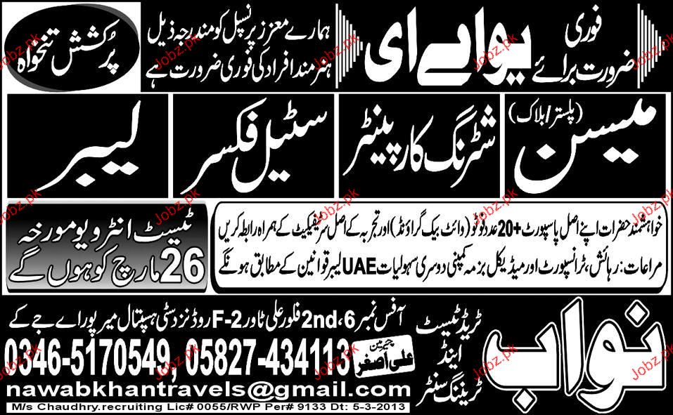 Tile Mason, Shuttering Carpenters, Steel Fixers Wanted
