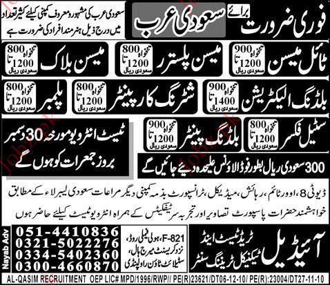 Tile Mason, Suturing Care painter, Plumber and Steel Fixer