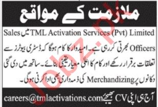 TML Activation Services Islamabad Jobs For Sales Officers
