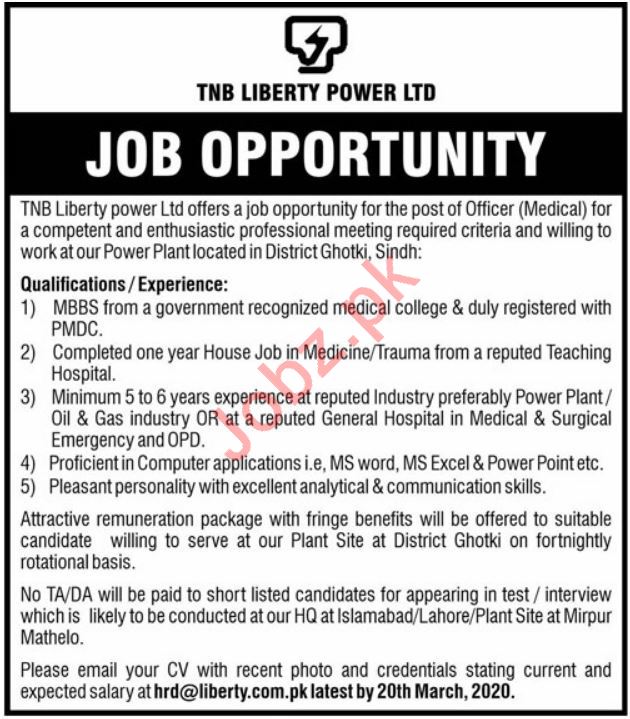 TNB Liberty Power Limited Medical Officer Jobs 2020