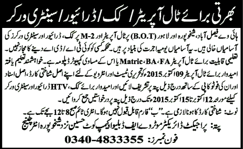 Toll Operators, Cook, Drivers And Sanitary Workers Wanted