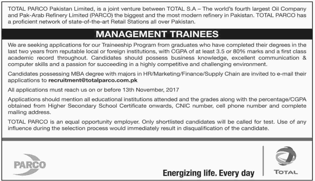 Latest Pak Arab Refinery PARCO Management Posts Karachi 2025