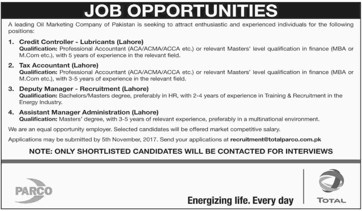 Latest Pak Arab Refinery PARCO Accounting Posts Karachi 2025