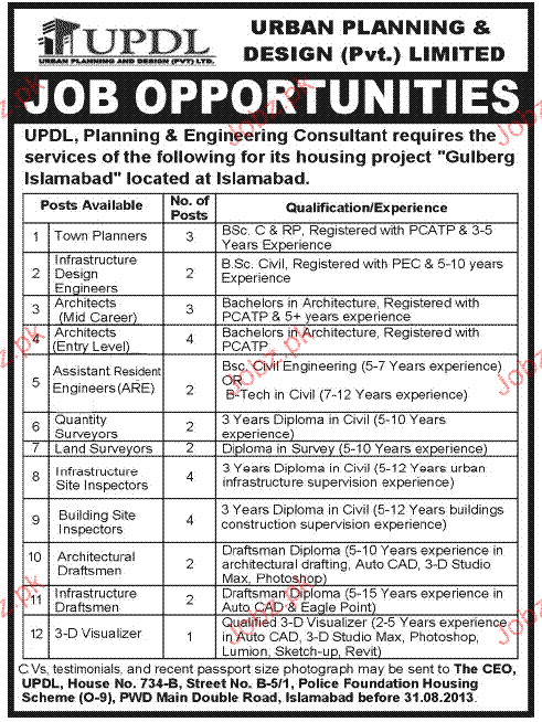 Town Planners, Architects, Assistant Resident Engg Wanted