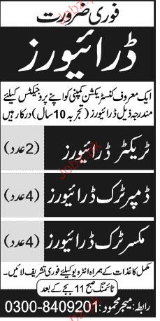 Tractor Drivers, Dumper Truck Drivers Job Opportunity