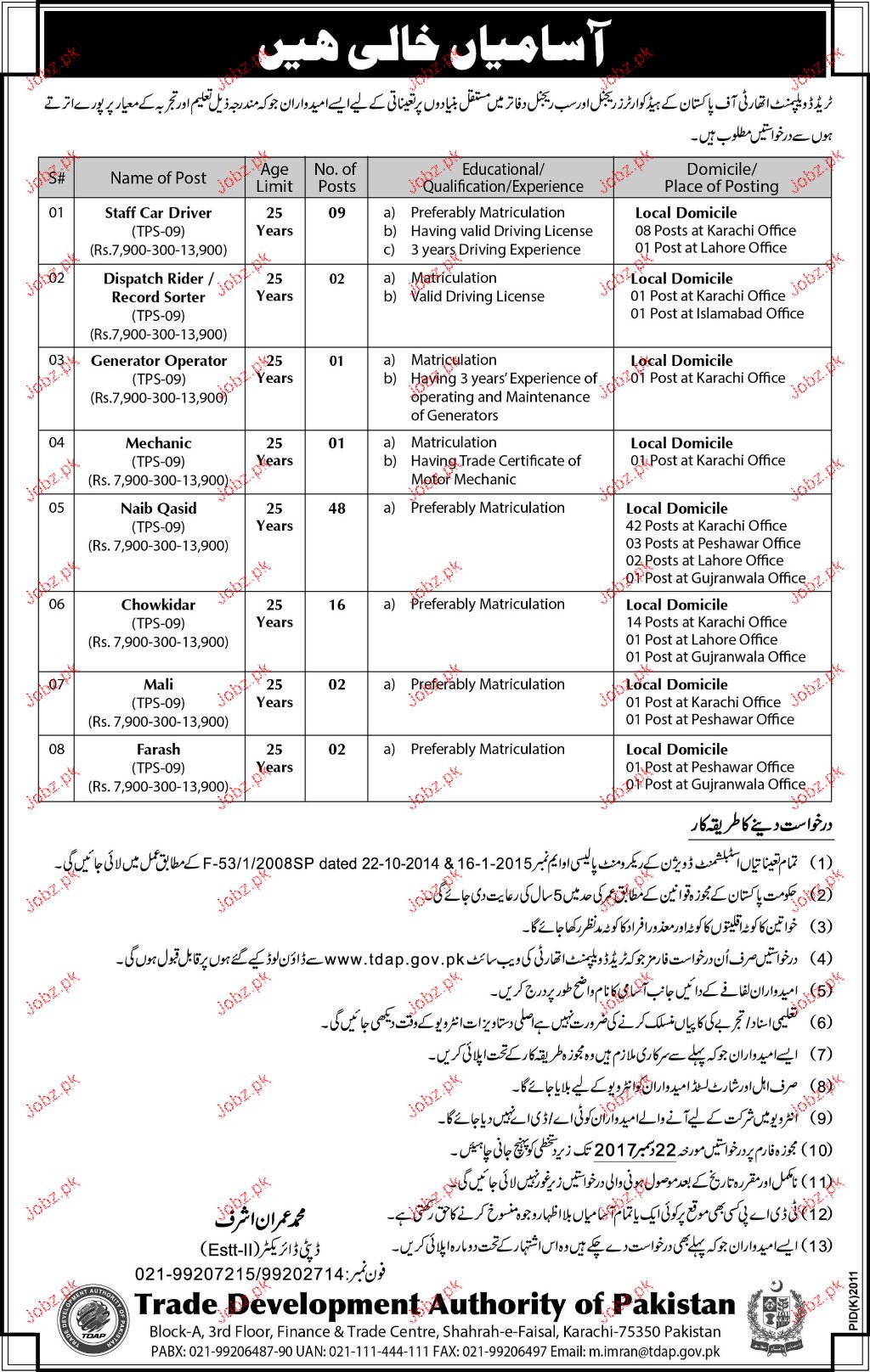 Latest Trade Development Authority of Pakistan Driving Posts Lahore 2025