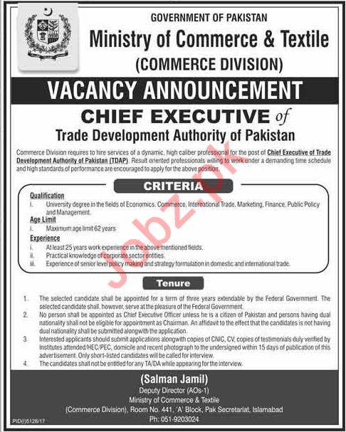 Trade Development Authority of Pakistan TDAP Jobs 2018