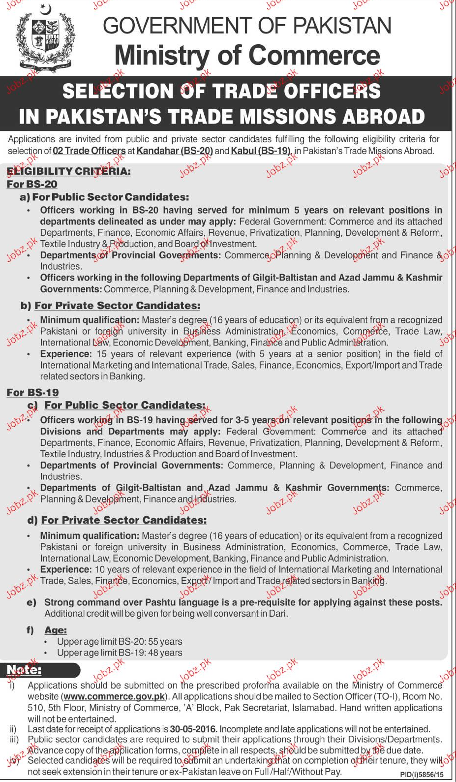 Latest Ministry of Commerce Management Posts Islamabad 2025