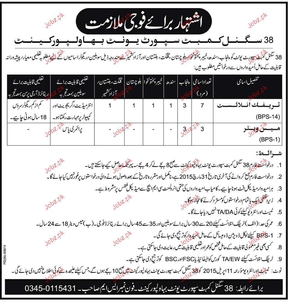 Traffic Analyst And Mess Waiters Job In Pakistan Army