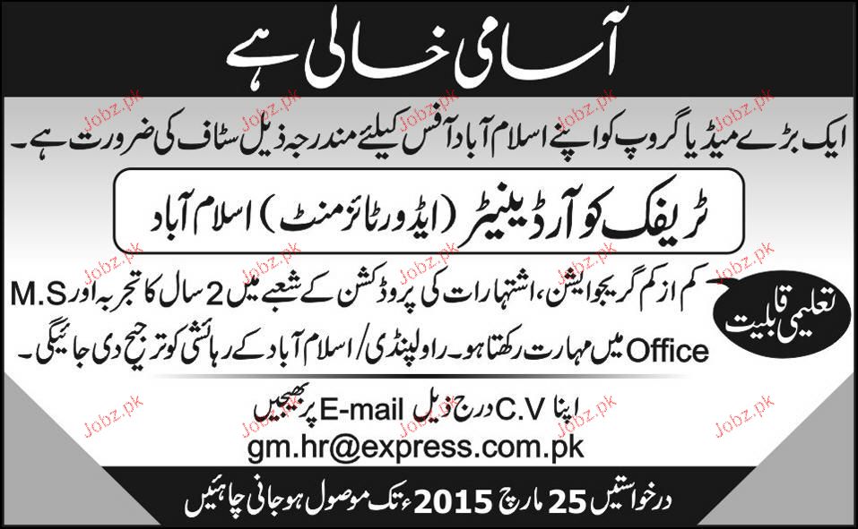 Apply as per details in job advertisement. Login to view further details of how to apply via https://www.jobz.pk online.