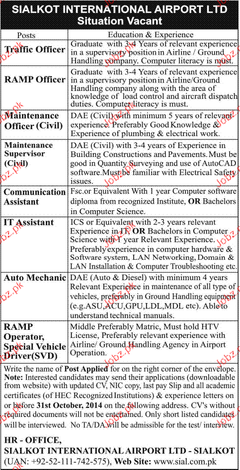 Apply as per details in job advertisement. Login to view further details of how to apply via https://www.jobz.pk online.