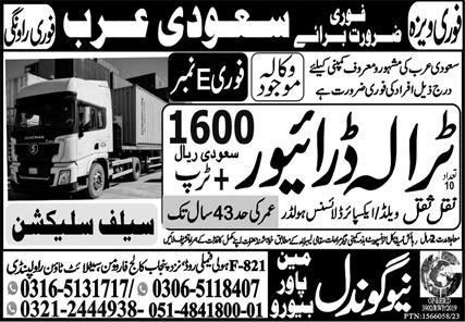 New Gondal Manpower Bureau jobs advertisement dated about 16 June 2023 in daily Express Newspaper invites application for the vacant post of htv driver, driver and traila driver in Riyadh, dammam Saudi Arabia. Preferred Education is Intermediate and Matric etc.