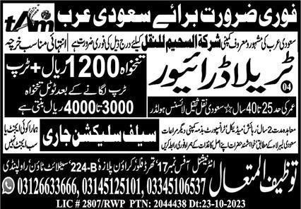 Traila Driver & HTV Driver Jobs 2023 in Saudi Arabia