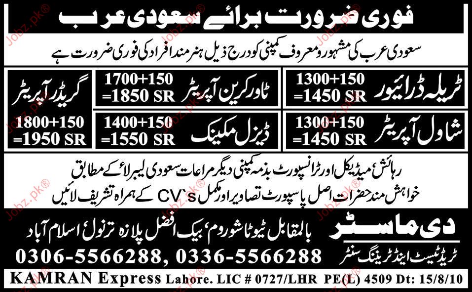 Traila Driver, Tower Carin Operator, Diesel Mechanic Jobs