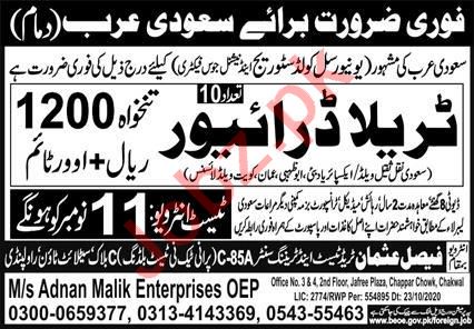 Trailer Driver & HTV Driver Jobs 2020 in Saudi Arabia