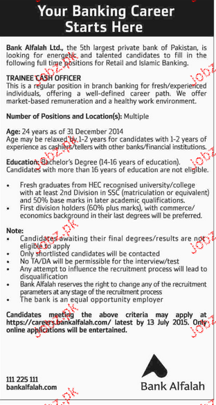 Apply as per details in job advertisement. Login to view further details of how to apply via https://www.jobz.pk online.