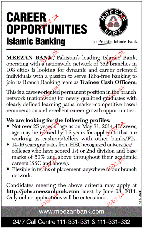 Trainee Cash Officers Job In Meezan Bank Ltd