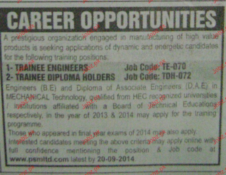 Trainee Engineers And Trainee Diploma Holders Wanted