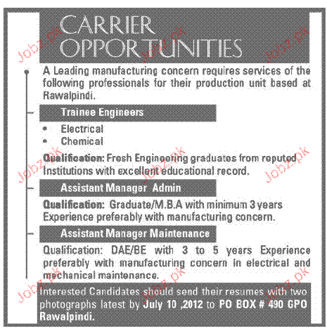 Trainee Engineers, Assistant Manager Admin Job Opportunity