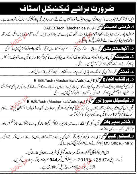Apply as per details in job advertisement. Login to view further details of how to apply via https://www.jobz.pk online.