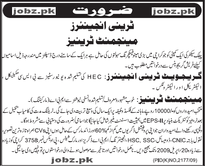 Apply as per details in job advertisement. Login to view further details of how to apply via https://www.jobz.pk online.
