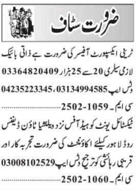 Private Company jobs advertisement dated about 28 February 2025 in daily Jang Newspaper invites application for the vacant post of trainee export officer and accountant in Valencia Town Lahore, lahore Punjab Pakistan. Preferred Education is Intermediate, Bachelor, BBA and B.com etc.