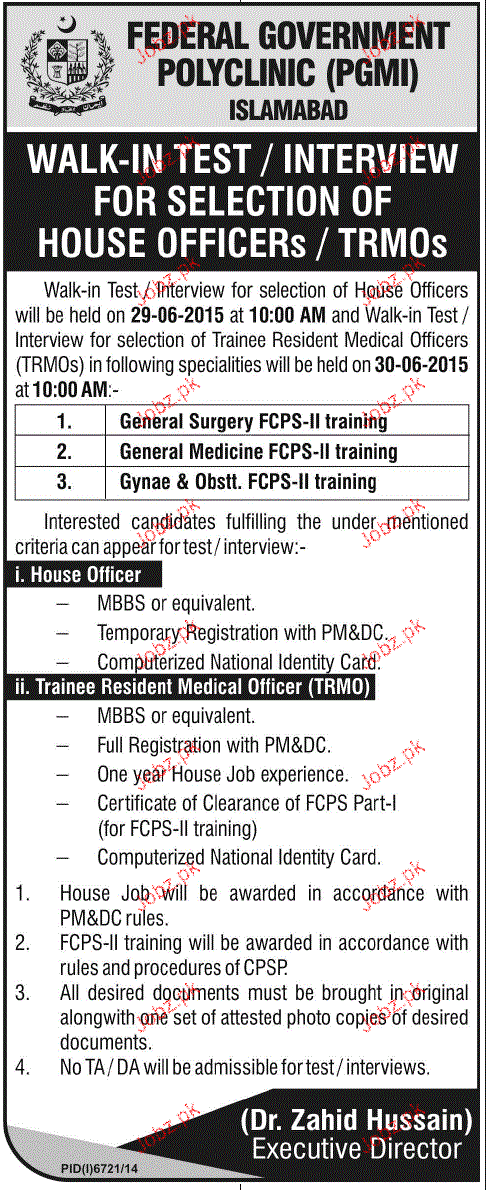 Apply as per details in job advertisement. Login to view further details of how to apply via https://www.jobz.pk online.