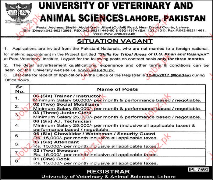 Trainers Jobs In University Of Veterinary & Animal Sciences