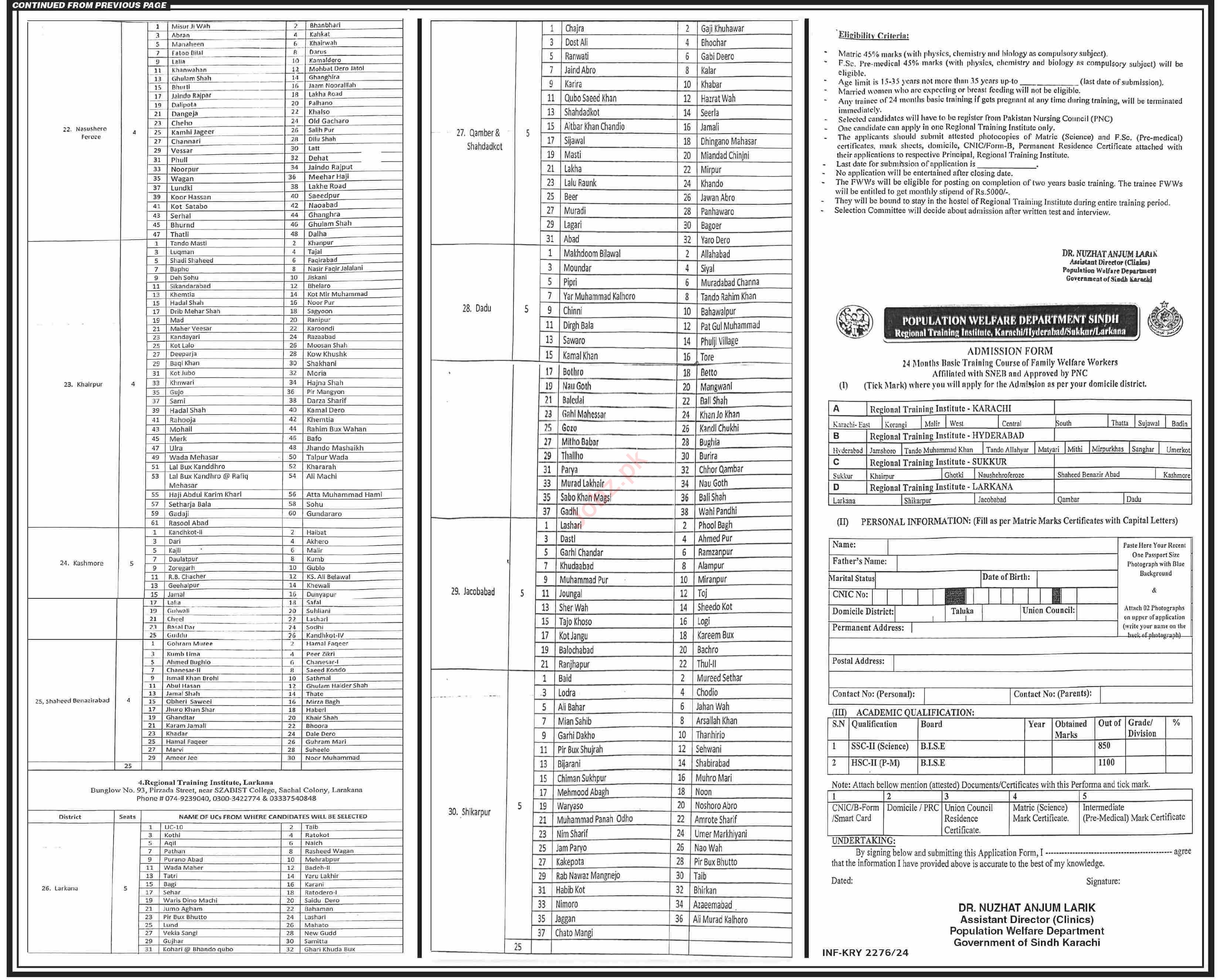 Population Welfare Department Karachi, sanghar, mirpur khas, tando allahyar, thatta, jacobabad, ghotki, kashmore, karachi, matiari, hyderabad, sukkur, umerkot, badin, jamshoro, shikarpur, sujawal, dadu, naushahro feroze, qambar shahdadkot, khairpur, tando muhammad khan, nawabshah, mithi and larkana Sindh Pakistan invites applications from eligible candidates for the post of family welfare worker as per advertisement of July 14, 2024 published in daily Dawn Newspaper. Matric and Intermediate etc. educational qualification will be preferred.