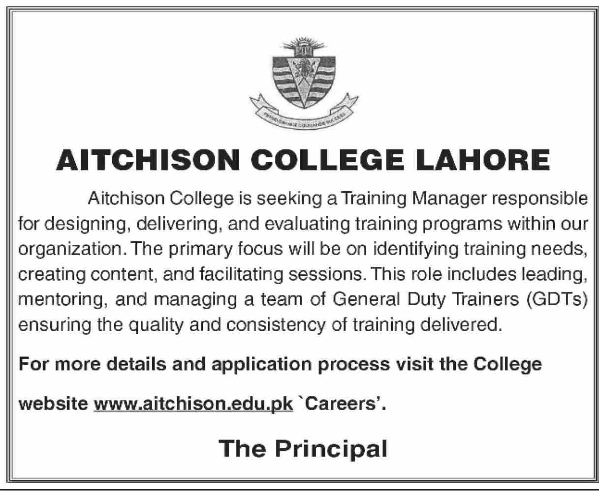 Training Manager Job At Aitchison College Lahore