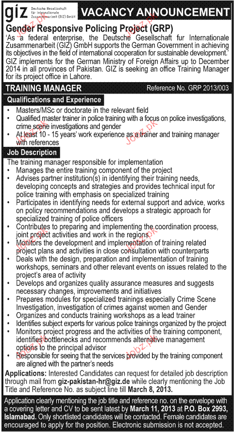 Apply as per details in job advertisement. Login to view further details of how to apply via https://www.jobz.pk online.