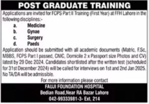 Latest Private jobs in Fauji Foundation Hospital in Medical and others can be applied till 29 December 2024 or as per closing date in newspaper ad. Read complete ad online to know how to apply on latest Fauji Foundation Hospital job opportunities.