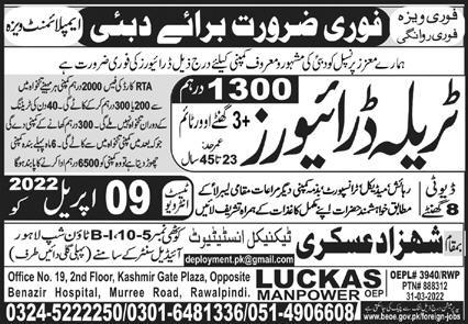 Latest Luckas Manpower Driving Posts Dubai 2025