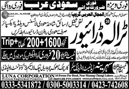 Luna Corporation latest Overseas Driving jobs and others can be applied till February 20, 2024 or as per closing date in newspaper ad. Read complete ad online to know how to apply on latest Luna Corporation job opportunities. During job medical, accommodation and food facility is available.